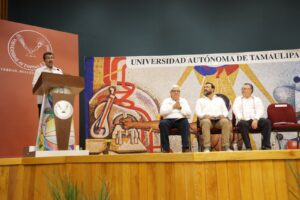Durante su mensaje, el rector destacó que la graduación no solo marca la conclusión de un proceso académico, sino el fortalecimiento de la profesionalización, la identidad regional y el desarrollo sostenible de Tamaulipas.