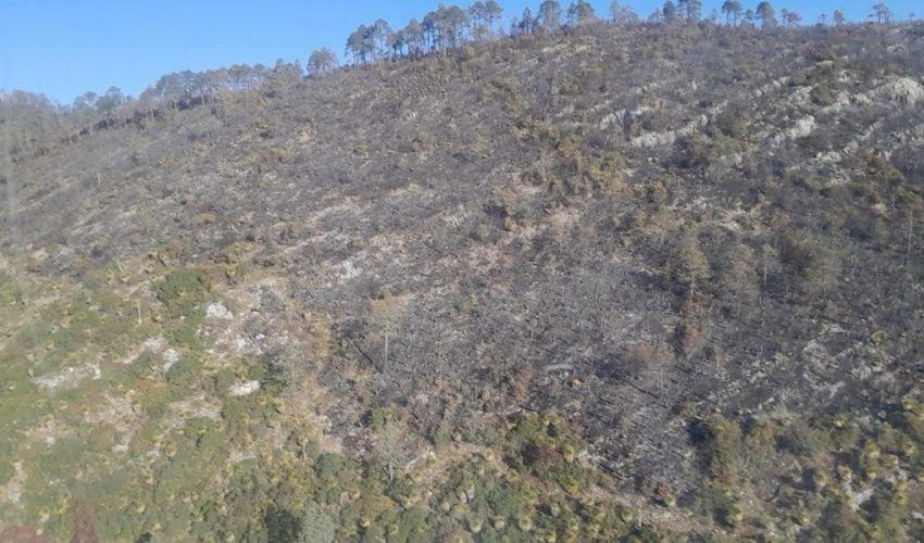 De acuerdo con el reporte del Centro Estatal de Manejo del Fuego (CEMF), el siniestro registró una afectación aproximada de 540 hectáreas de vegetación, principalmente en áreas de bosque de encino–pino, así como zonas de hojarasca, herbáceo, arbustivo y arbolado adulto.