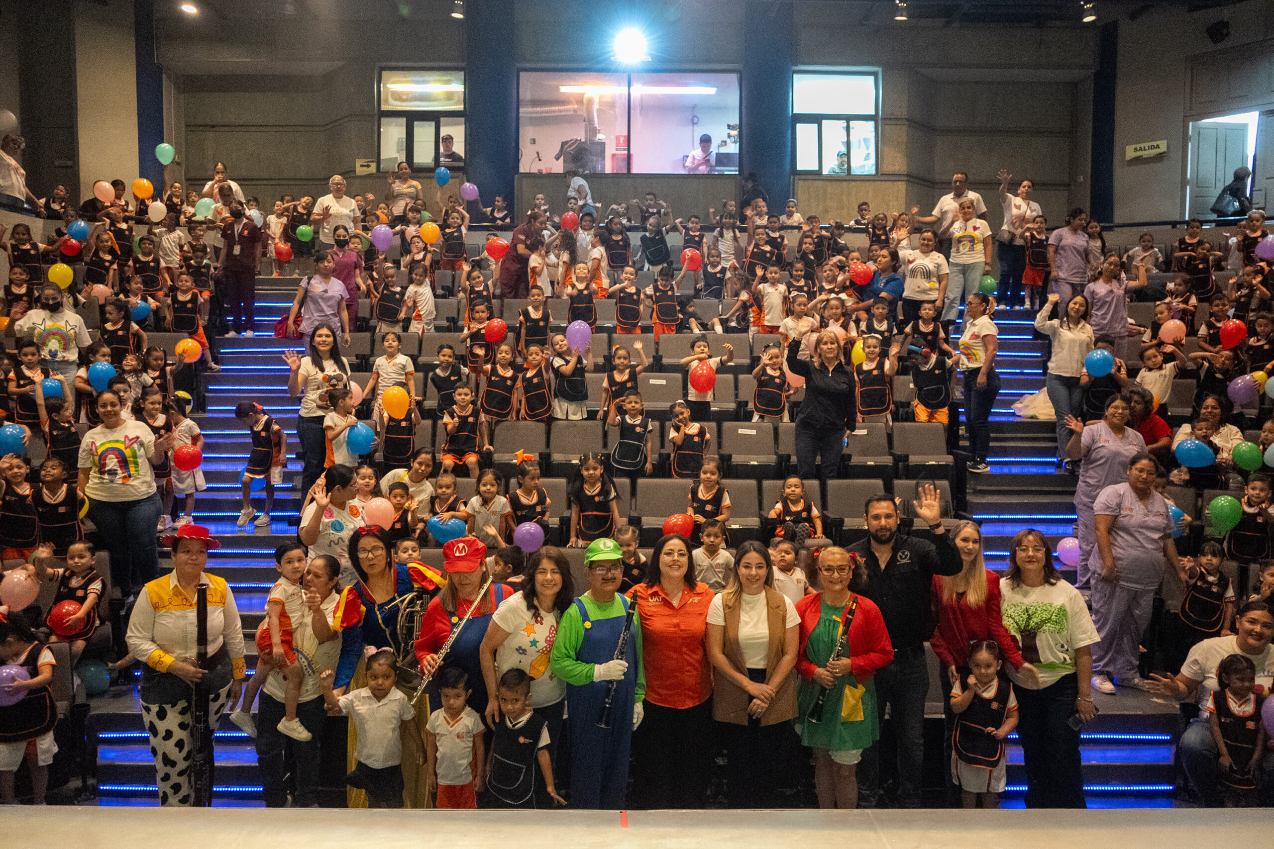 Los músicos de la UAT, caracterizados como personajes infantiles como Mario, Luigi, Jessie la Vaquerita, Blancanieves y la Chilindrina, capturaron la atención del público con un repertorio que incluyó melodías populares de películas infantiles y clásicos musicales.