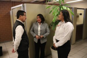 Mantuvo un acercamiento directo con el personal administrativo, a quienes saludó y reconoció por su compromiso cotidiano, subrayando la importancia de fomentar una gestión cercana que permita atender de primera mano las necesidades de la comunidad universitaria y fortalecer el trabajo colaborativo en beneficio del desarrollo institucional.